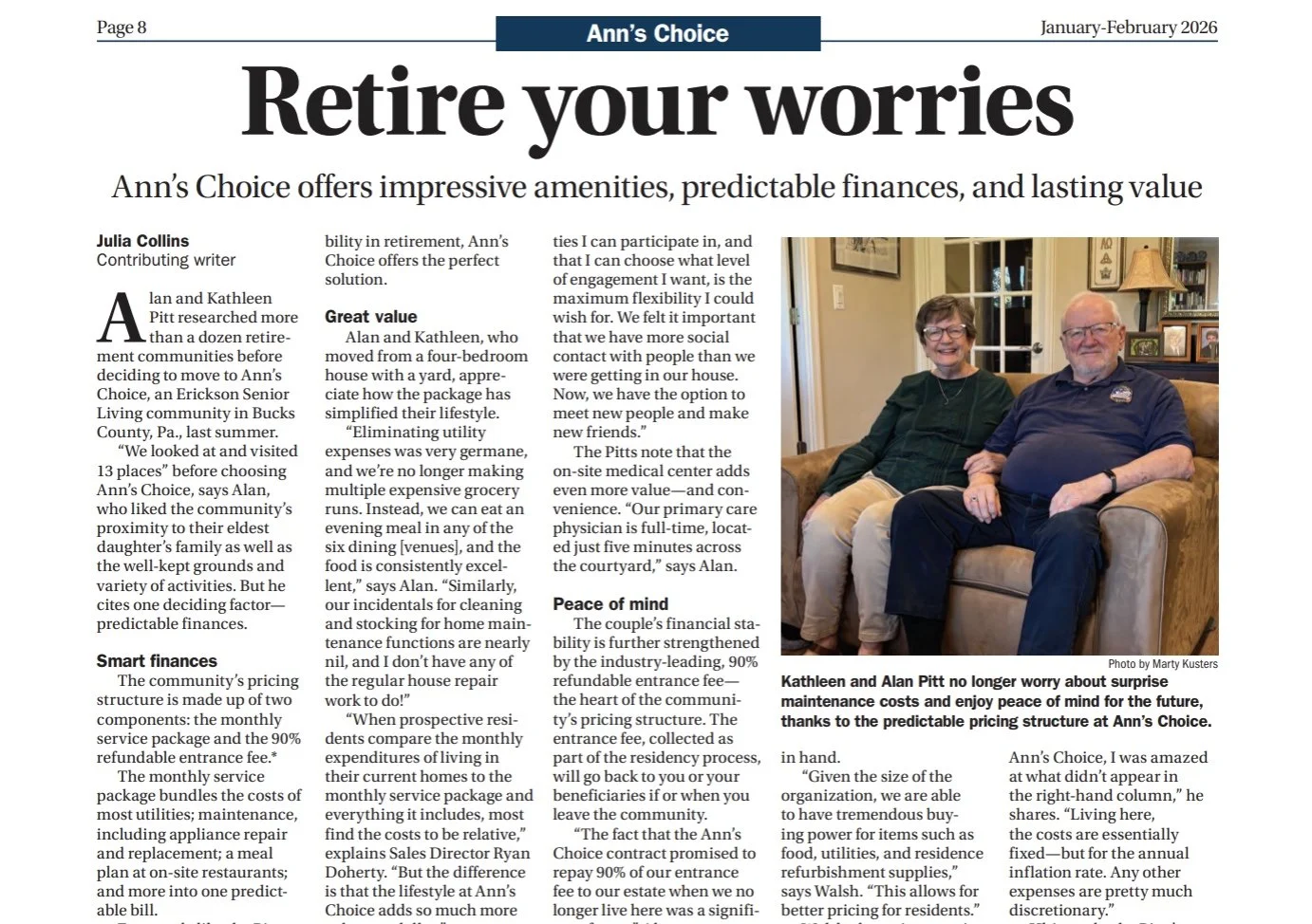 For the past 20 years, I have written long-form feature articles for the Erickson Tribune, highlighting the people, programs, and culture within Erickson Senior Living communities across the country. Through resident and staff interviews, I craft human-centered stories that blend interviews, narrative storytelling, and editorial strategy.